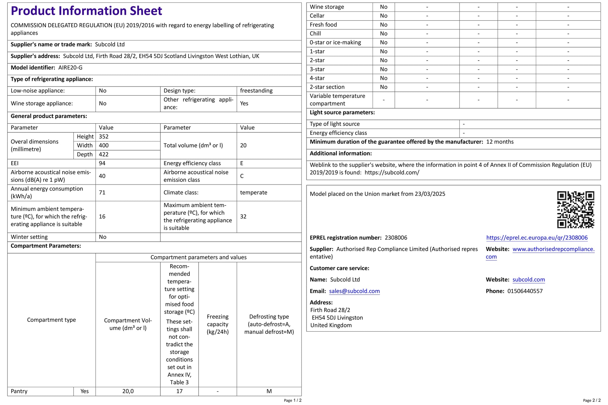 The Subcold Aire20-G is equipped with premium thermoelectric technology cooling for optimum performance. A quiet (40dB) and economical fridge with an impressive energy consumption of only 71kWh / per Year