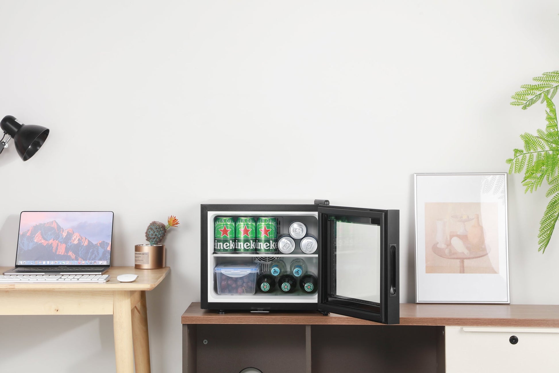 A compact but spacious mini fridge with a net capacity of 20 litres. It can fit in many places, including kitchen counters, bedrooms, gaming rooms, offices, campervans, and motor homes.