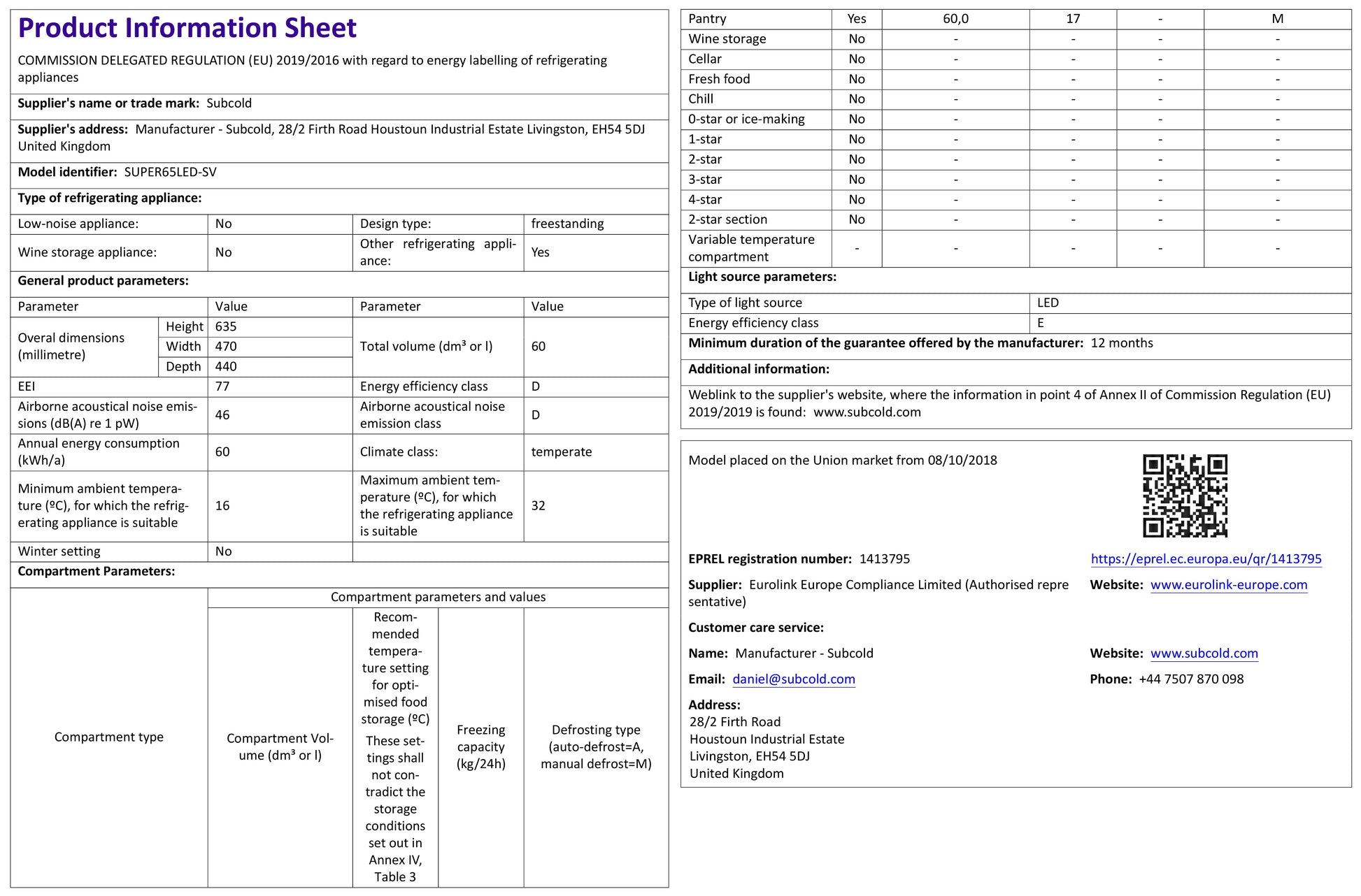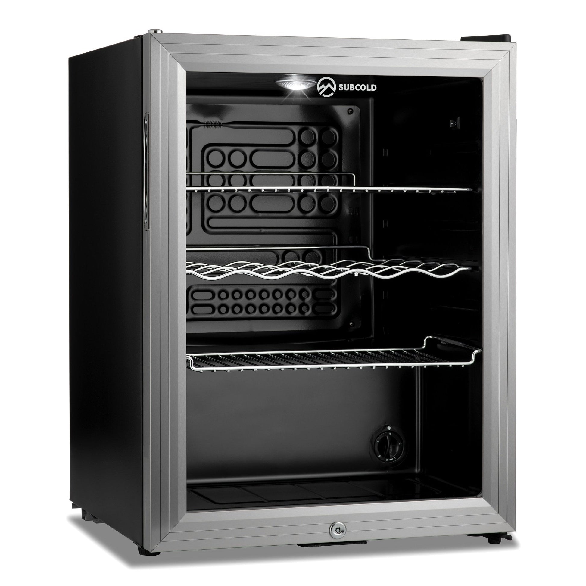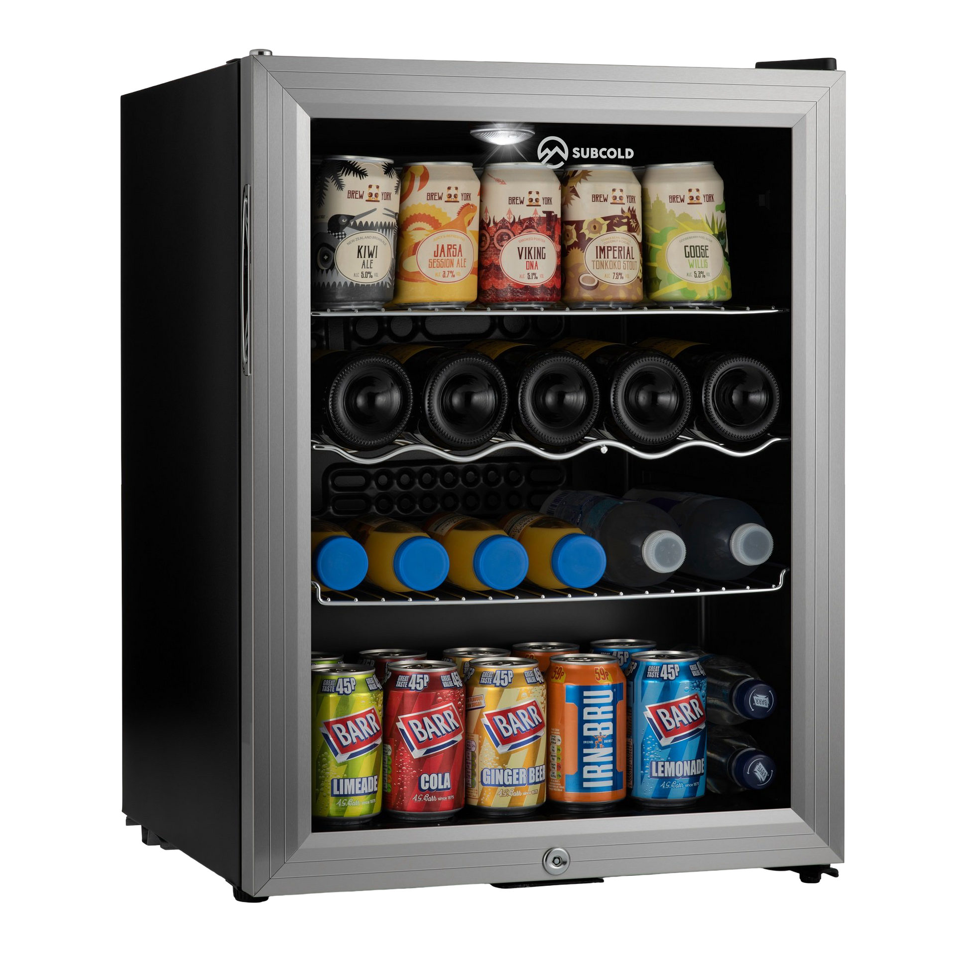 Looking for a new glass door Fridge for your entertainment area? The Subcold Super 65 silver door drinks Fridge is hard to beat. Conveniently sized for under-counter installations and table-top use, this new and improved model measures H640mm x W469mm x D440mm and offers a generous total capacity of 65 litres. Designed to accommodate up to 48 beer cans and 5 bottles of wine, it is the perfect drinks display fridge for entertainment rooms, offices, home bars and man caves.