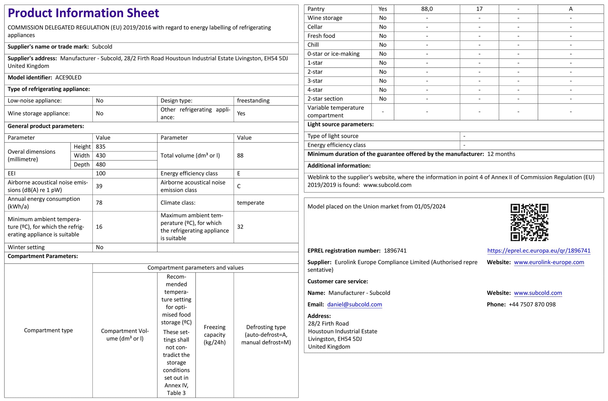 With an energy efficiency of only 78kWh/annum, ACE90 Beer Fridge is not only effective but also eco-friendly. Its freestanding design makes it a versatile addition to any room, from kitchens and home bars to office spaces. Enjoy the perfect blend of functionality, style, and efficiency with the Subcold ACE90 Beer Fridge.
