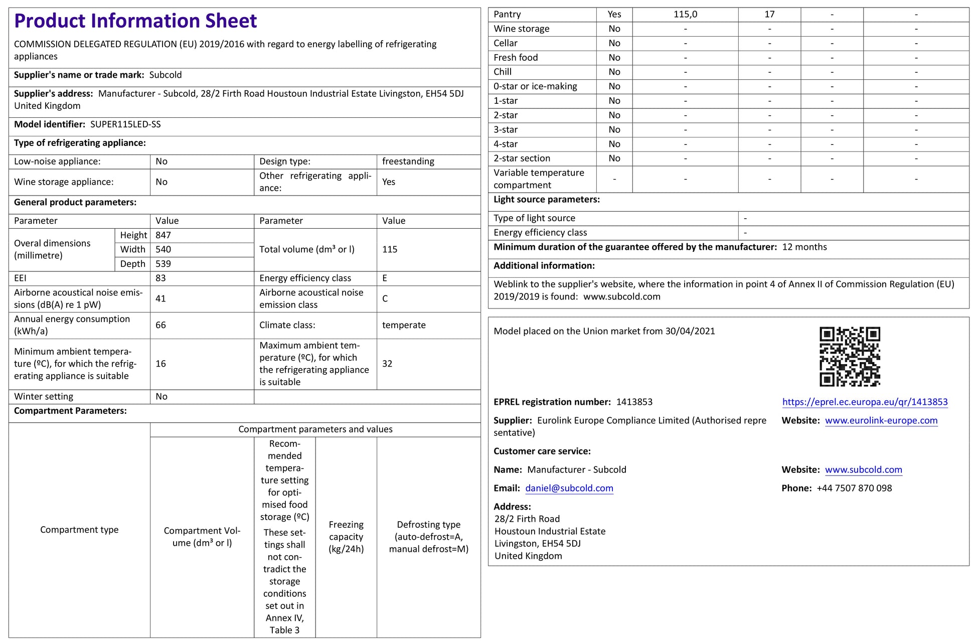 The Subcold Super115 beer fridge is equipped with advanced compressor cooling technology for reliable, peaceful, and economical running with energy consumption of only 66kWh per annum!